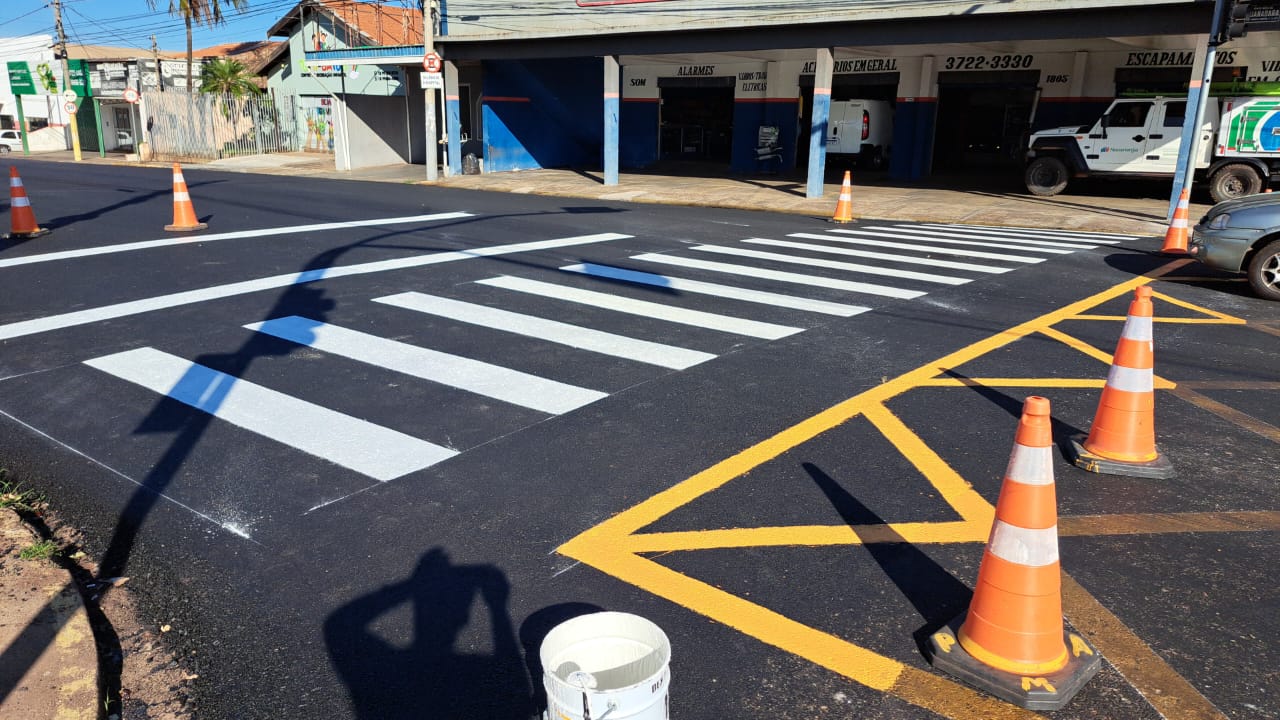 Atualmente os trabalhadores estão operando na região central com a revitalização de várias sinalizações, em especial as faixas de travessia de pedestre.
