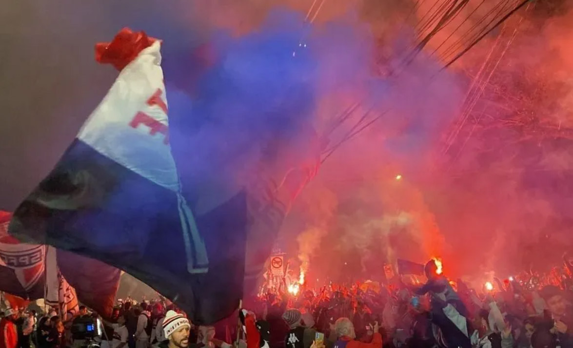 A tradicional festa da torcida do São Paulo na chegada ao