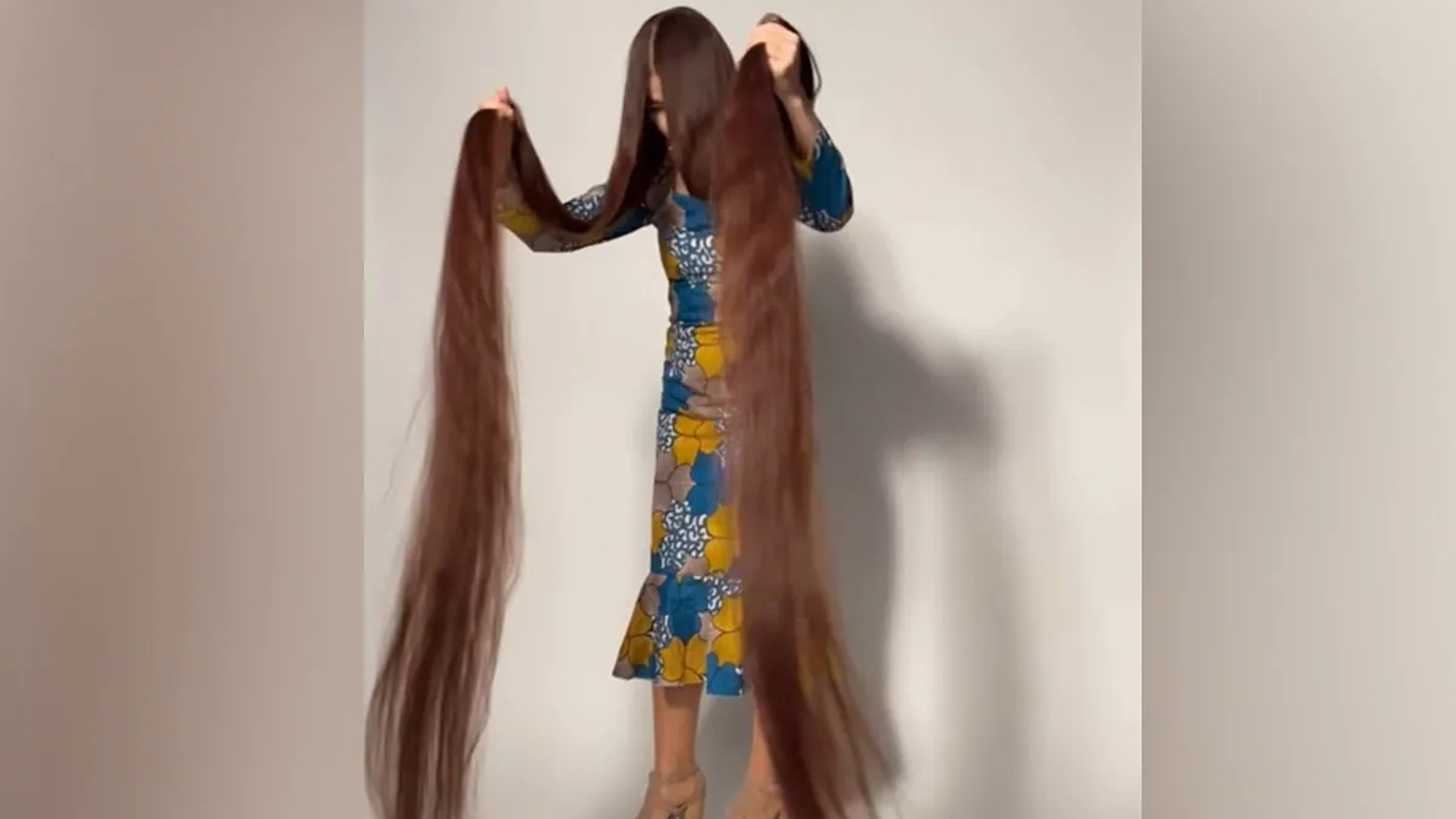 causou espanto e admiração. Com 1,65m de altura, o cabelo de Aliia chega a