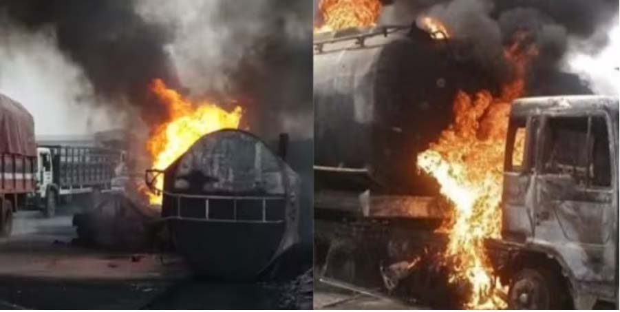 um caminhão-tanque acidentado explodiu perto de moradores que estavam reunidos